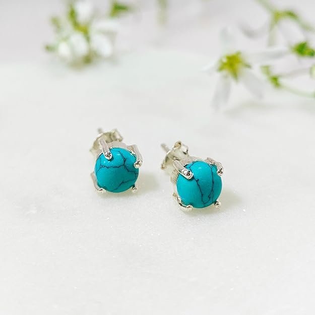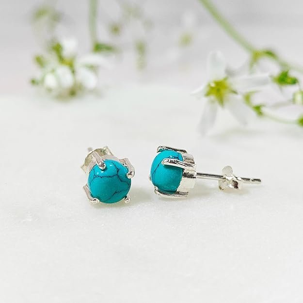 This item: 925 Sterling Silver Turquoise Stone Stud Earrings for Women & Girls