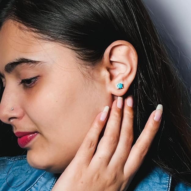 925 Sterling Silver Turquoise Stone Stud Earrings for Women & Girls