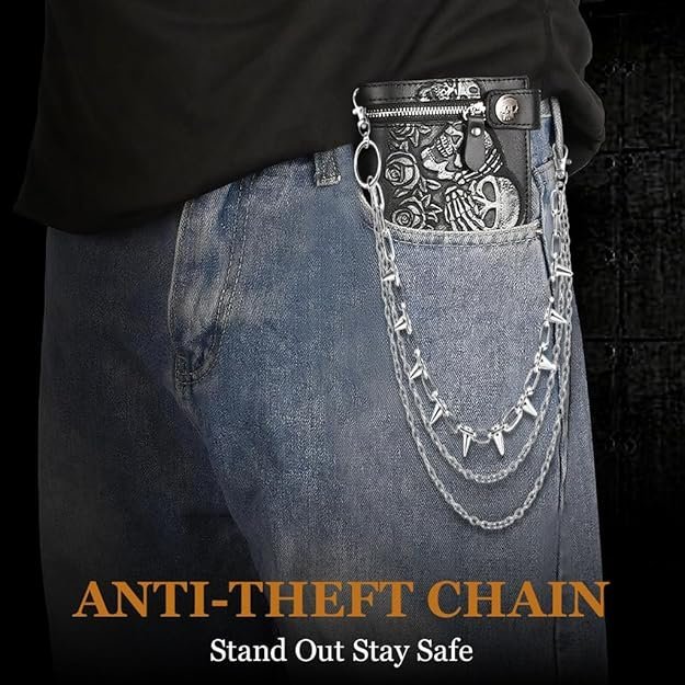 This item: Gothic Silver Spike Wallet Pocket Keychains for men & boys