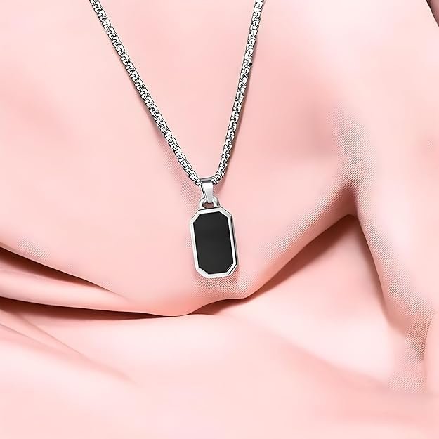 Moon Bucks Golden Locket Black Silver Chain For Men & Boys