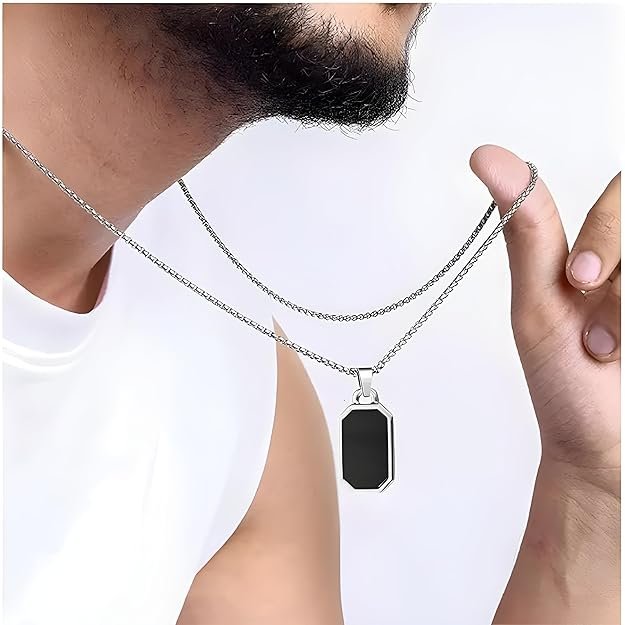 This item: Moon Bucks Golden Locket Black Silver Chain For Men & Boys