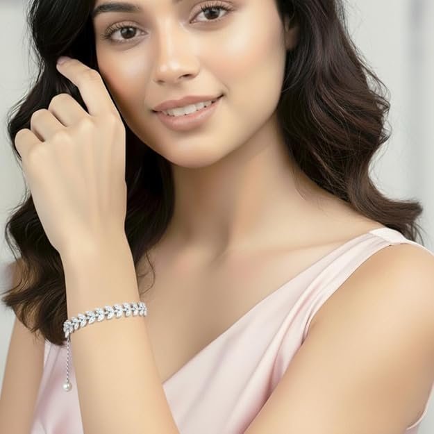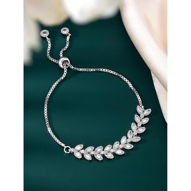 This item: Peora Cubic Zirconia Studded Adjustable Leaf Design Bracelet for Women & Girls