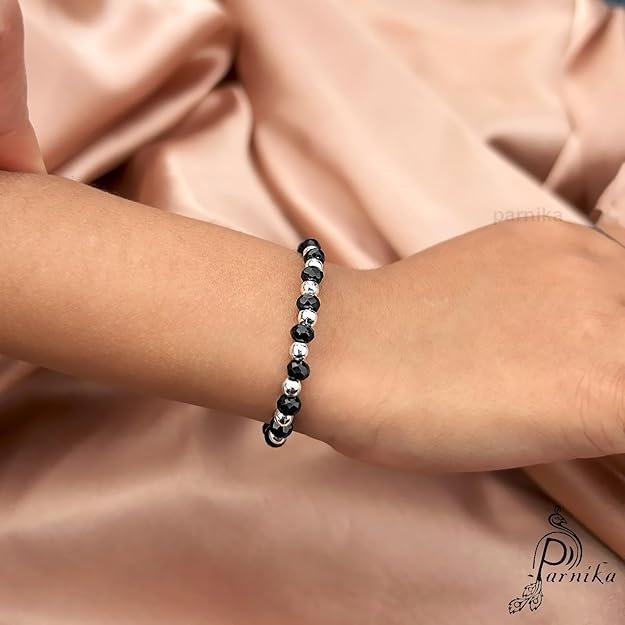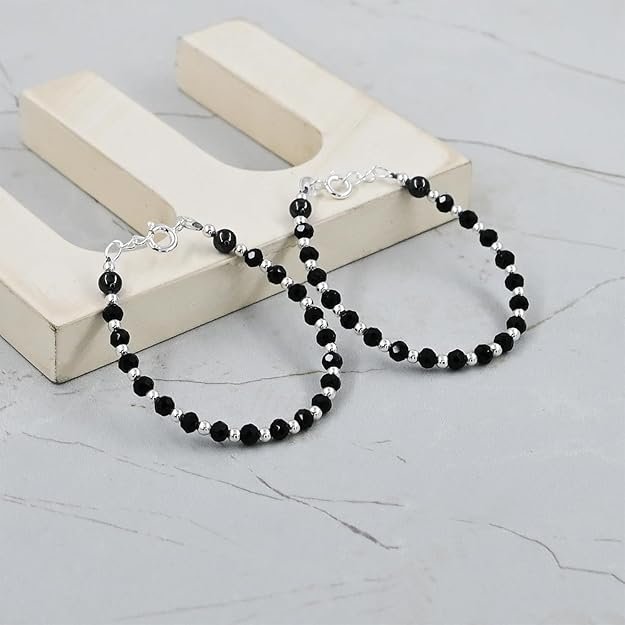 This item: Traditional Silver & Black Crystals Kids Silver Bracelet