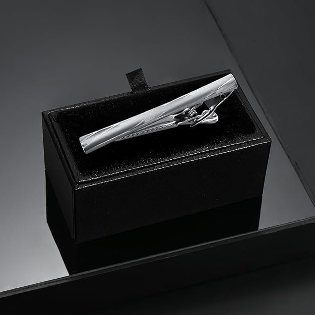 Ujoy Classic Tie Clips Set for Men Business Wedding Enamel Silver