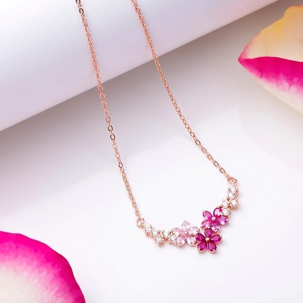 This item: ZAVYA 925 Sterling Silver Rose Gold Necklace Cubic Zirconia for Women & Girls